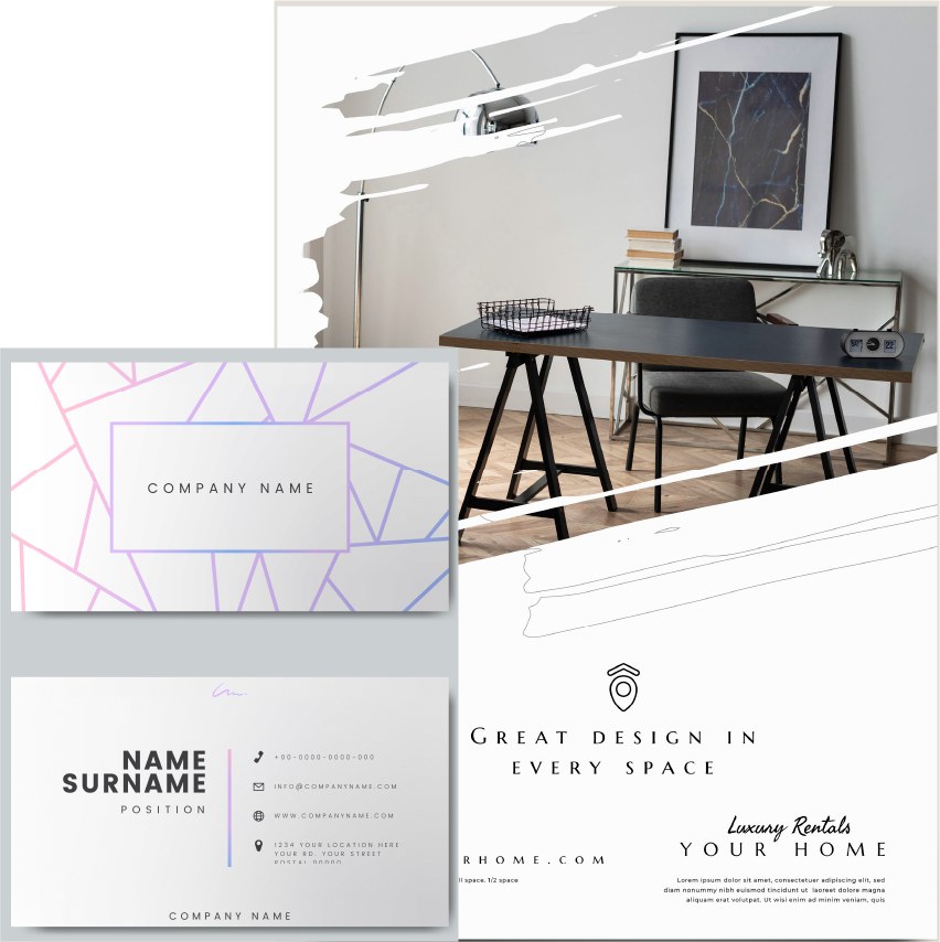 名刺やチラシからカタログ、パンフレットまで広告のあらゆるデザインから納品までお任せください。